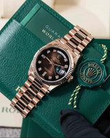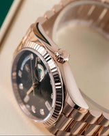 Luxury aur elegance ka perfect blend – Rolex Datejust in stunning rose gold finish with black dial aur diamond hour markers. Fluted bezel aur iconic Jubilee bracelet isay deta hai classy aur royal look. Date window with cyclops lens is model ki signature identity hai.